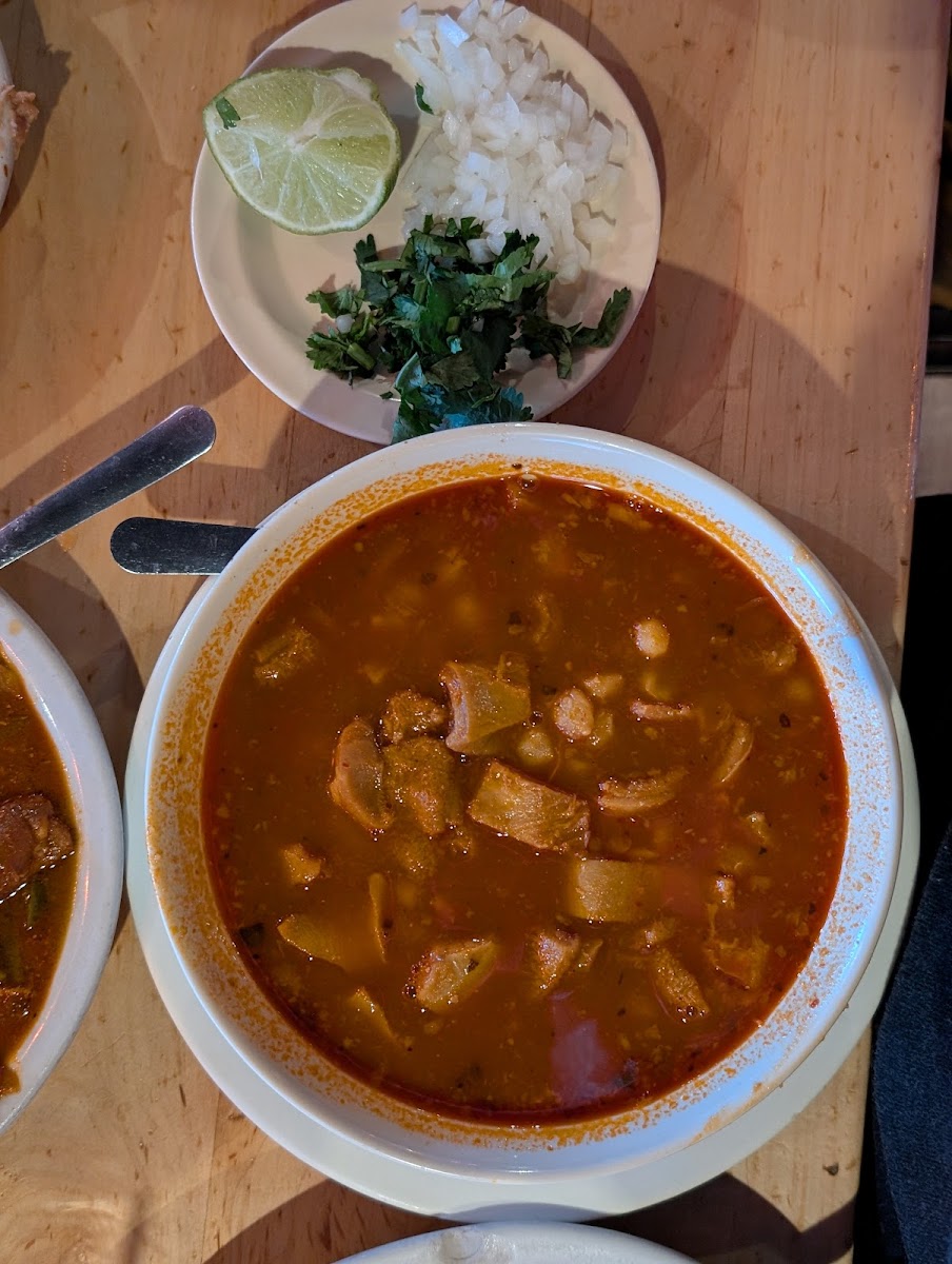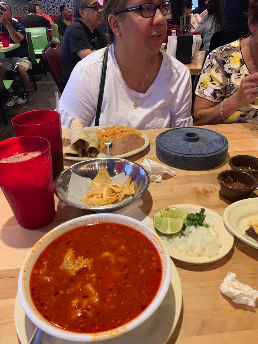 Wow good food and amazing place to eat with such good delicious home made tortillas. Plus one of my favorite place to go eat and that guiso rojo de puerco the best. I can referral you here to come and eat there best verity of plates meal are delicious . My waitress was excellent always on top to see what else we needed good job.